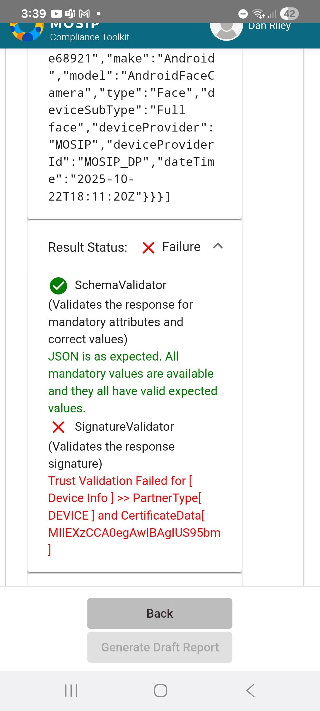 We are working with FACE Mock MDS to validate the CTK test environment so we can test our SecuGen L1 Auth Fingerprint sensor.