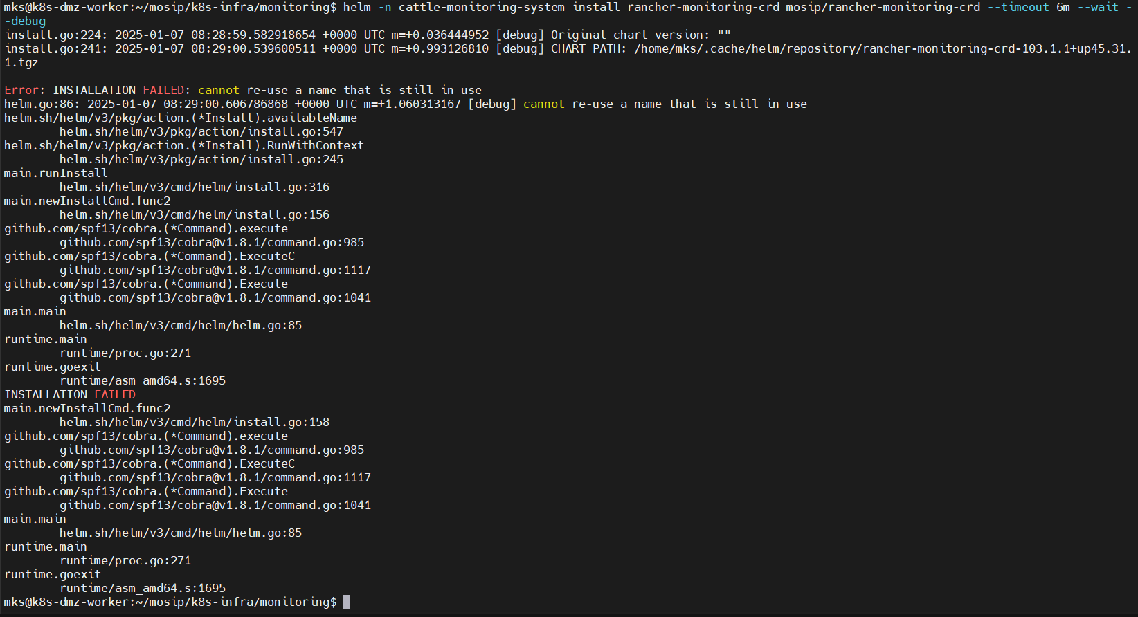 helm -n cattle-monitoring-system install rancher-monitoring-crd mosip/rancher-monitoring-crd --timeout 6m --wait --debug